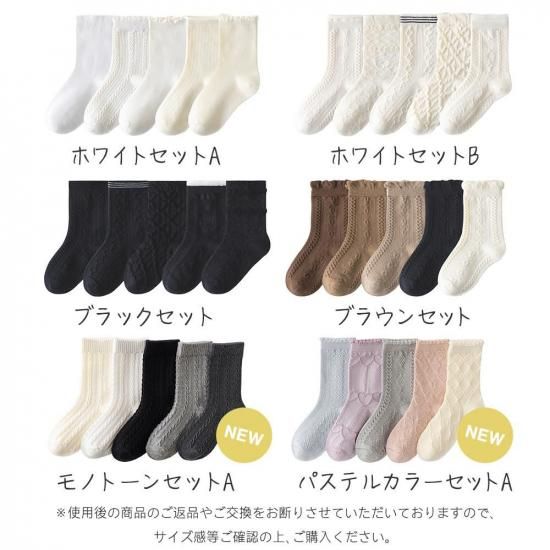 キッズソックス(女子用) 子供用靴下 (16cm-22cm) 5足セット